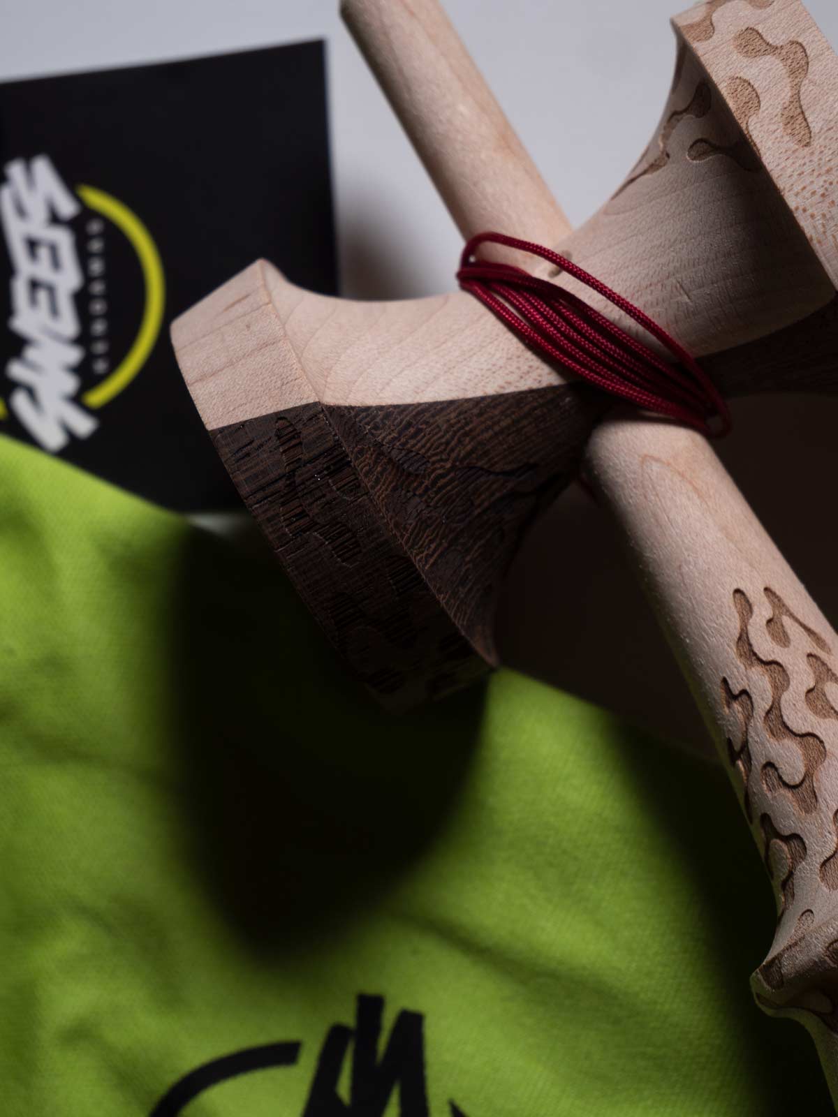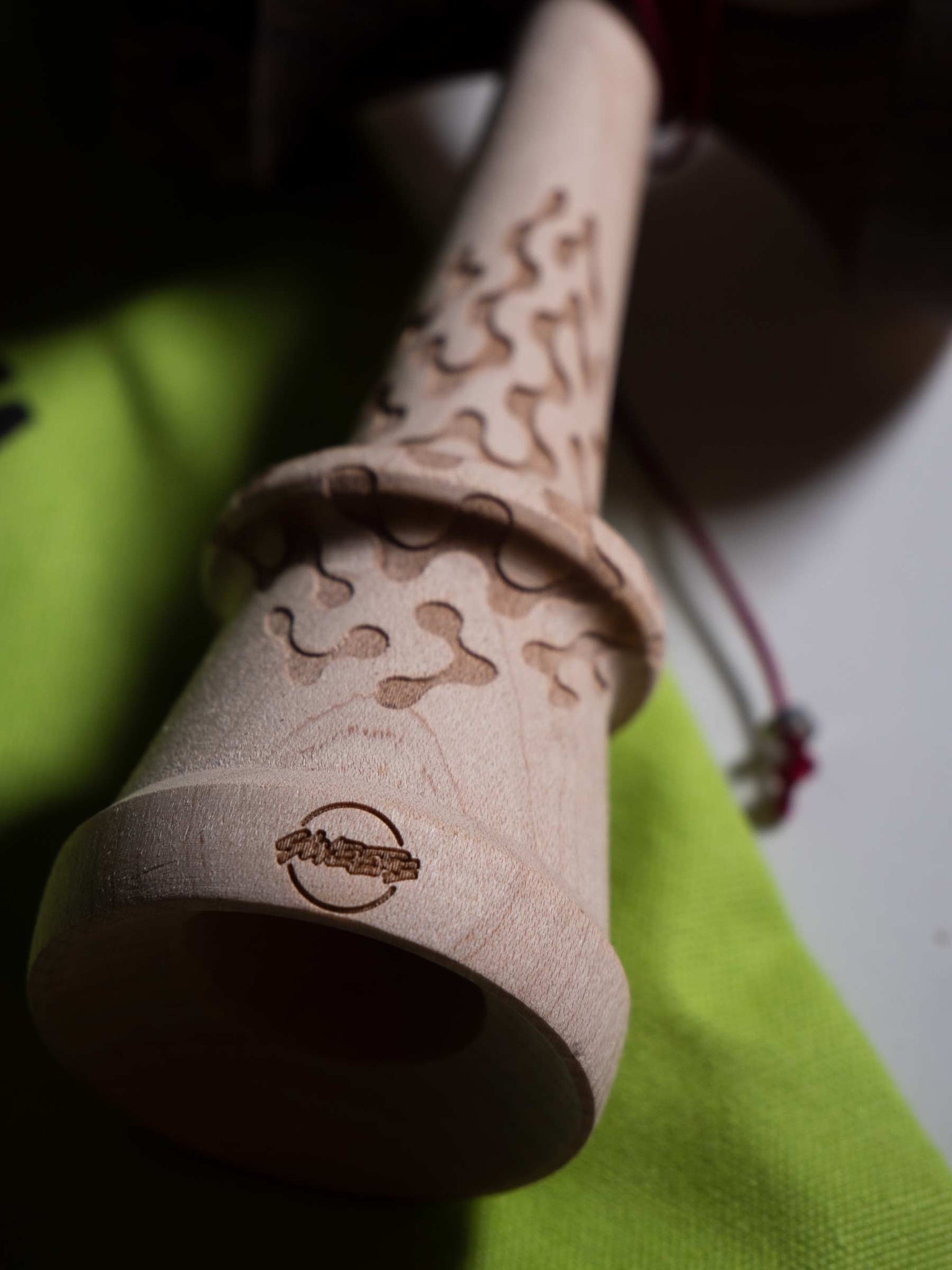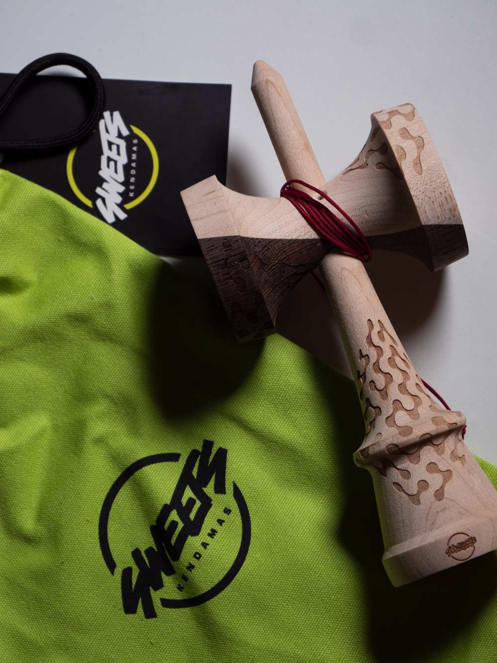 The Broken Shape was designed by Sweets Pro player Josh Kim to help expand the next generation of kendama play. The shape takes elements from previous kendamas and combines them together in a way that makes an incredible all around kendama. Larger cups, stance, and tama mean the Broken Shape is great for beginners to learn with an experienced players to unlock new tricks.