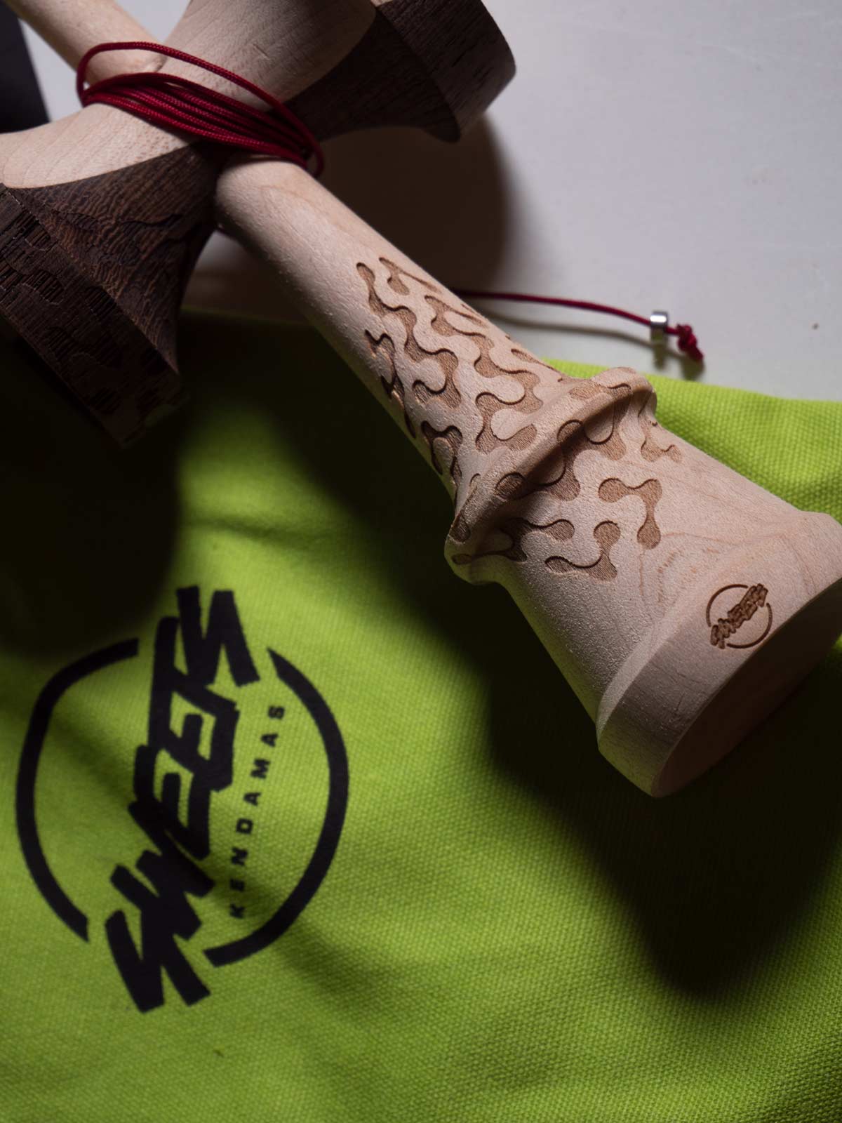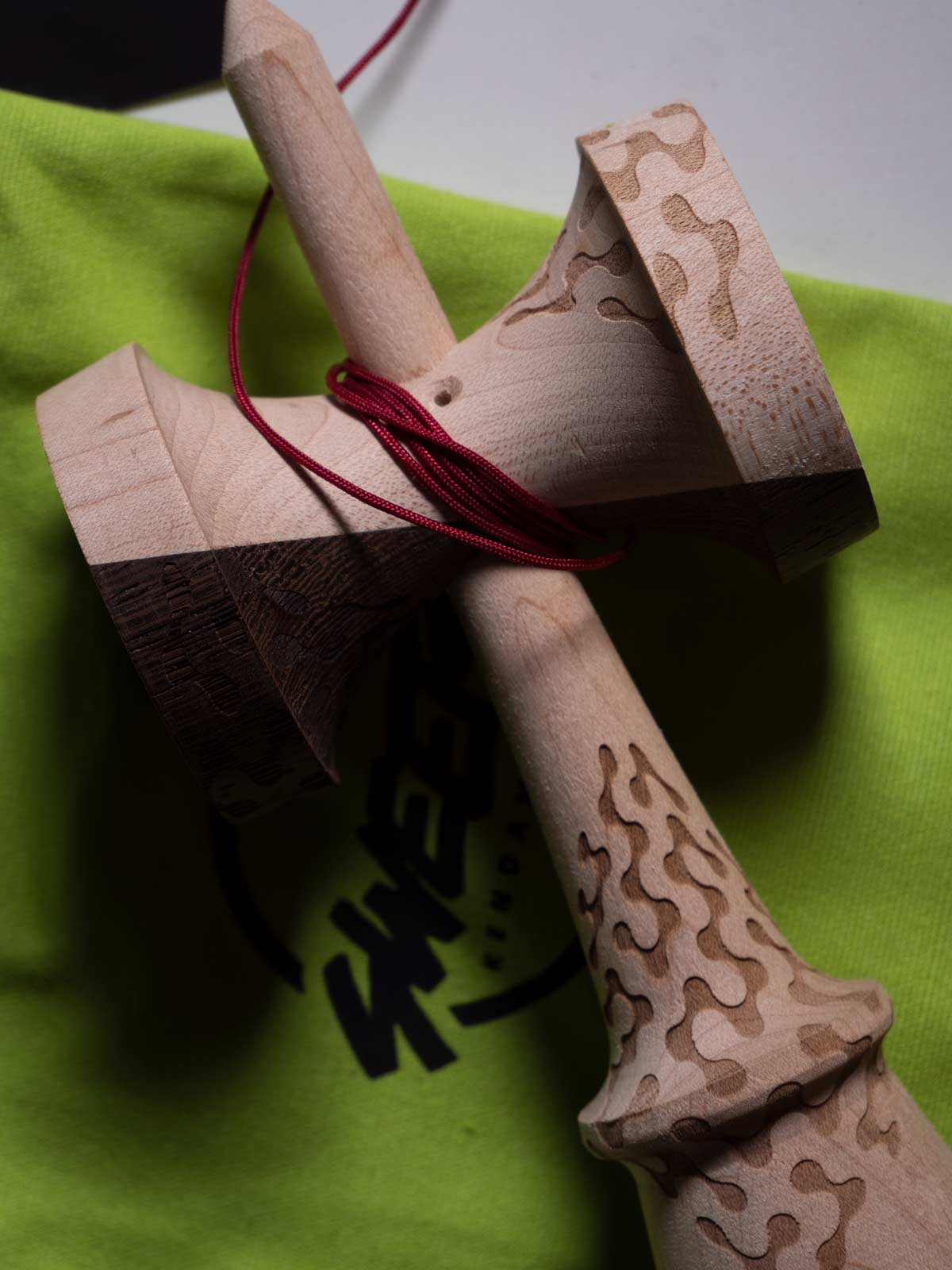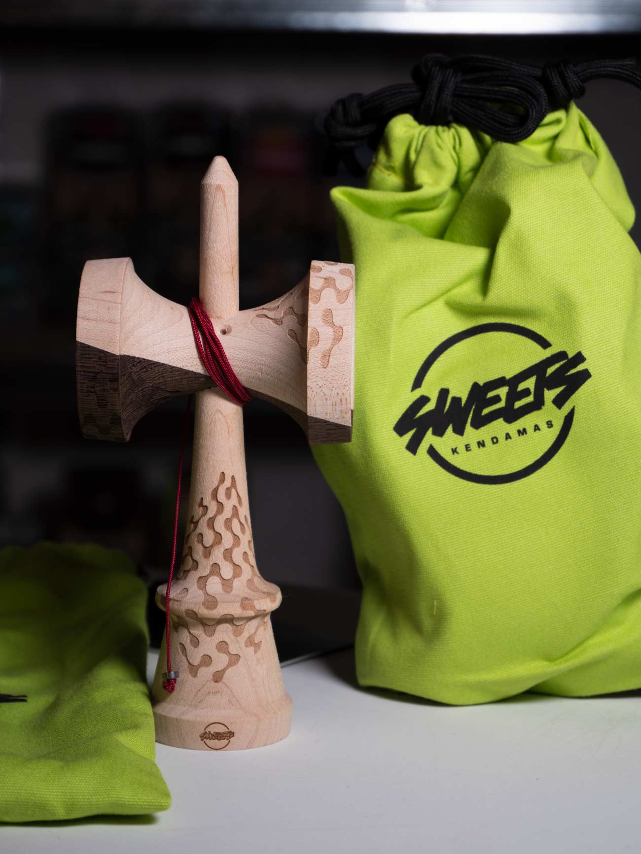 The Broken Shape was designed by Sweets Pro player Josh Kim to help expand the next generation of kendama play. The shape takes elements from previous kendamas and combines them together in a way that makes an incredible all around kendama. Larger cups, stance, and tama mean the Broken Shape is great for beginners to learn with an experienced players to unlock new tricks.