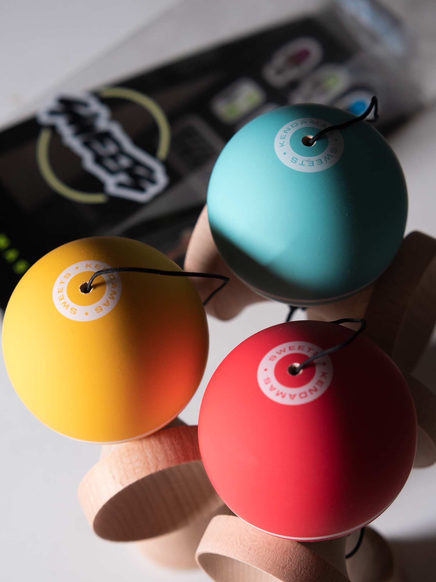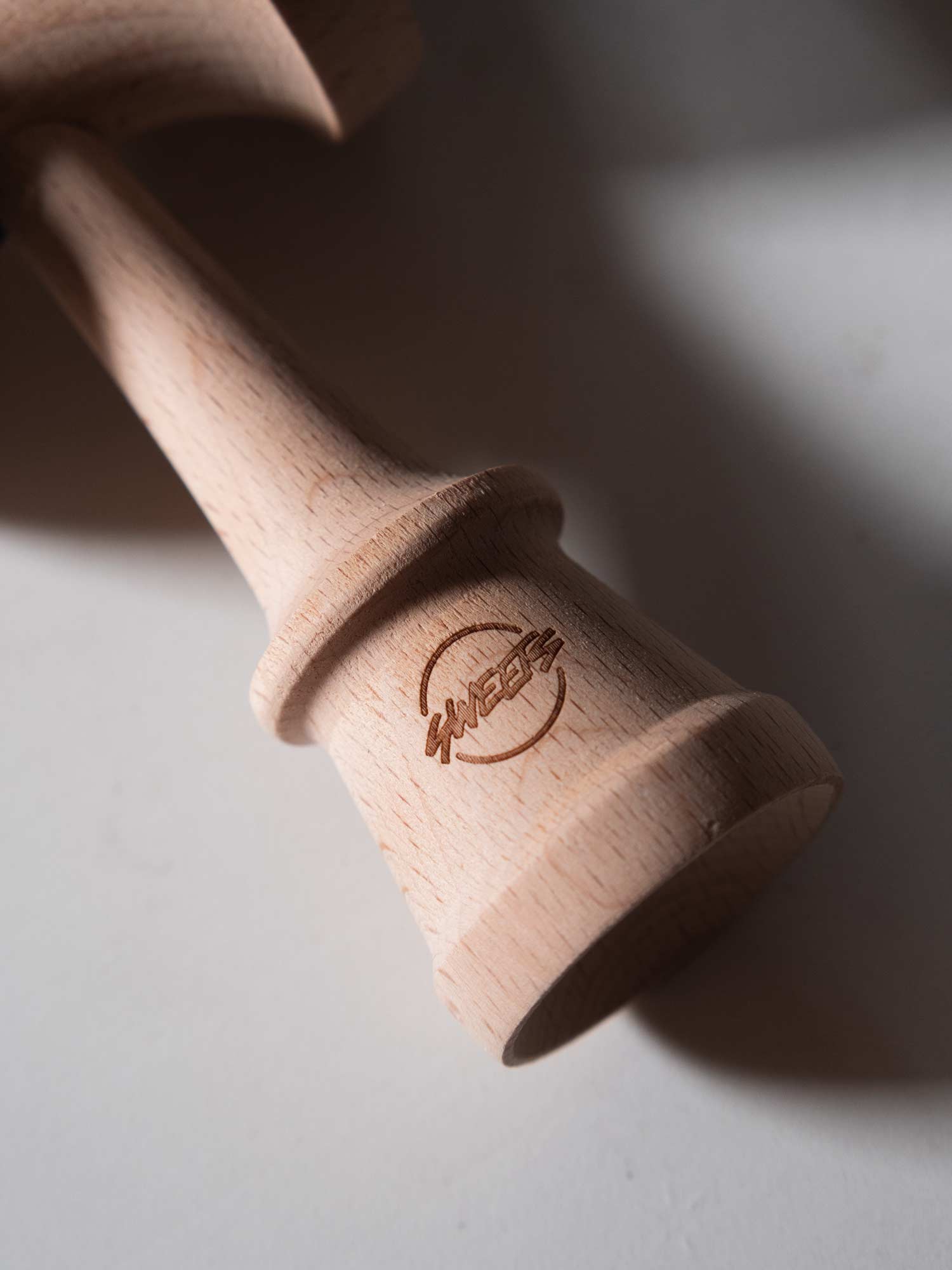 The Broken Shape was designed by Sweets Pro player Josh Kim to help expand the next generation of kendama play. The shape takes elements from previous kendamas and combines them together in a way that makes an incredible all around kendama. Larger cups, stance, and tama mean the Broken Shape is great for beginners to learn with an experienced players to unlock new tricks.